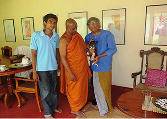 Unser Tsunami-Projektleiter, der buddhistische Mönch Ven. Bodananda, kam sogar extra nach Mount Lavinia, um den Hund anzuschauen und zu segnen. Auch Mrs. Peiris und Mr. Gamage statteten dem Hündchen einen Besuch ab.